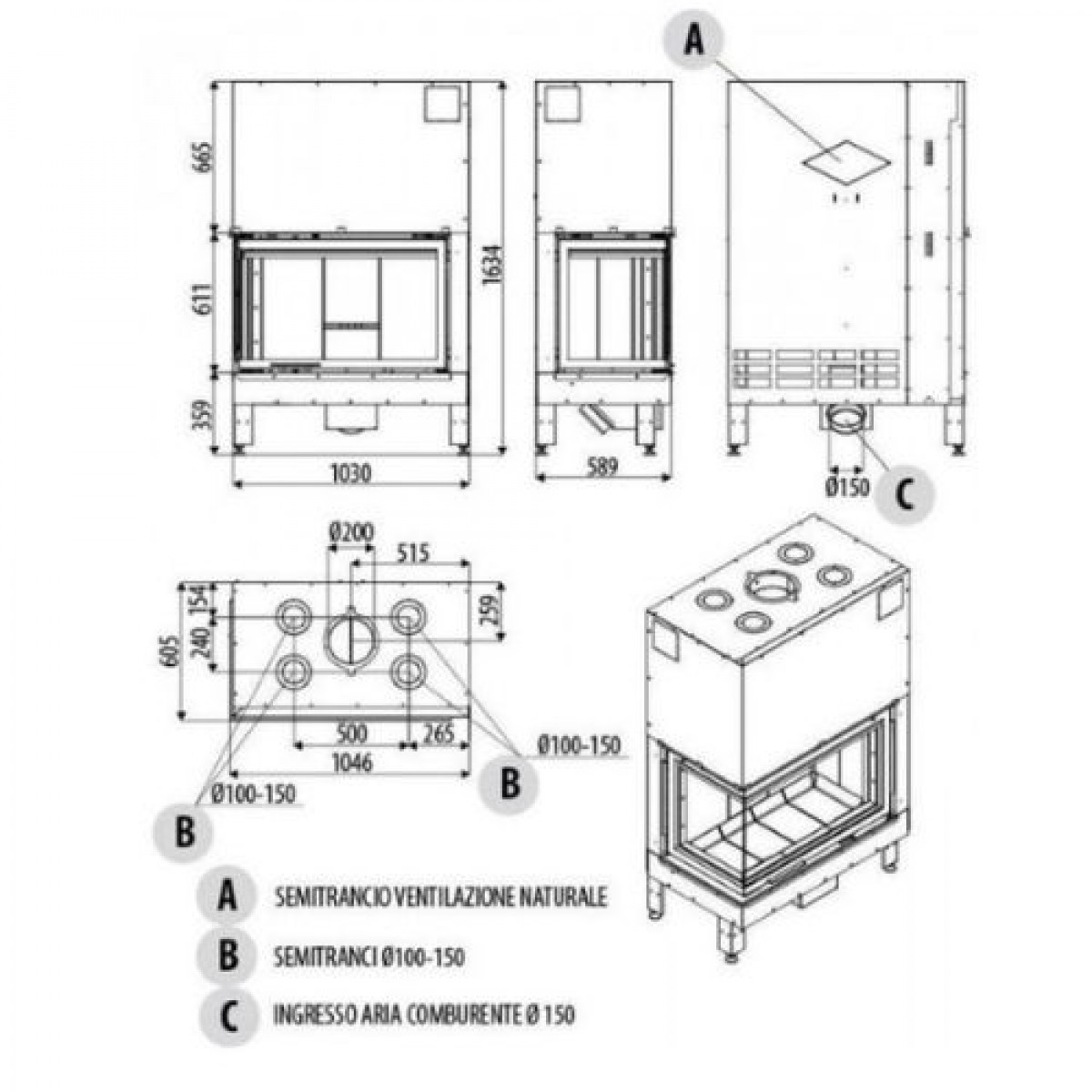 Велике скляне вікно: Завдяки своєму просторому двосторонньому скляному вікну (DX/SX) ця топка пропонує вражаючі панорамні види на горючі дрова.