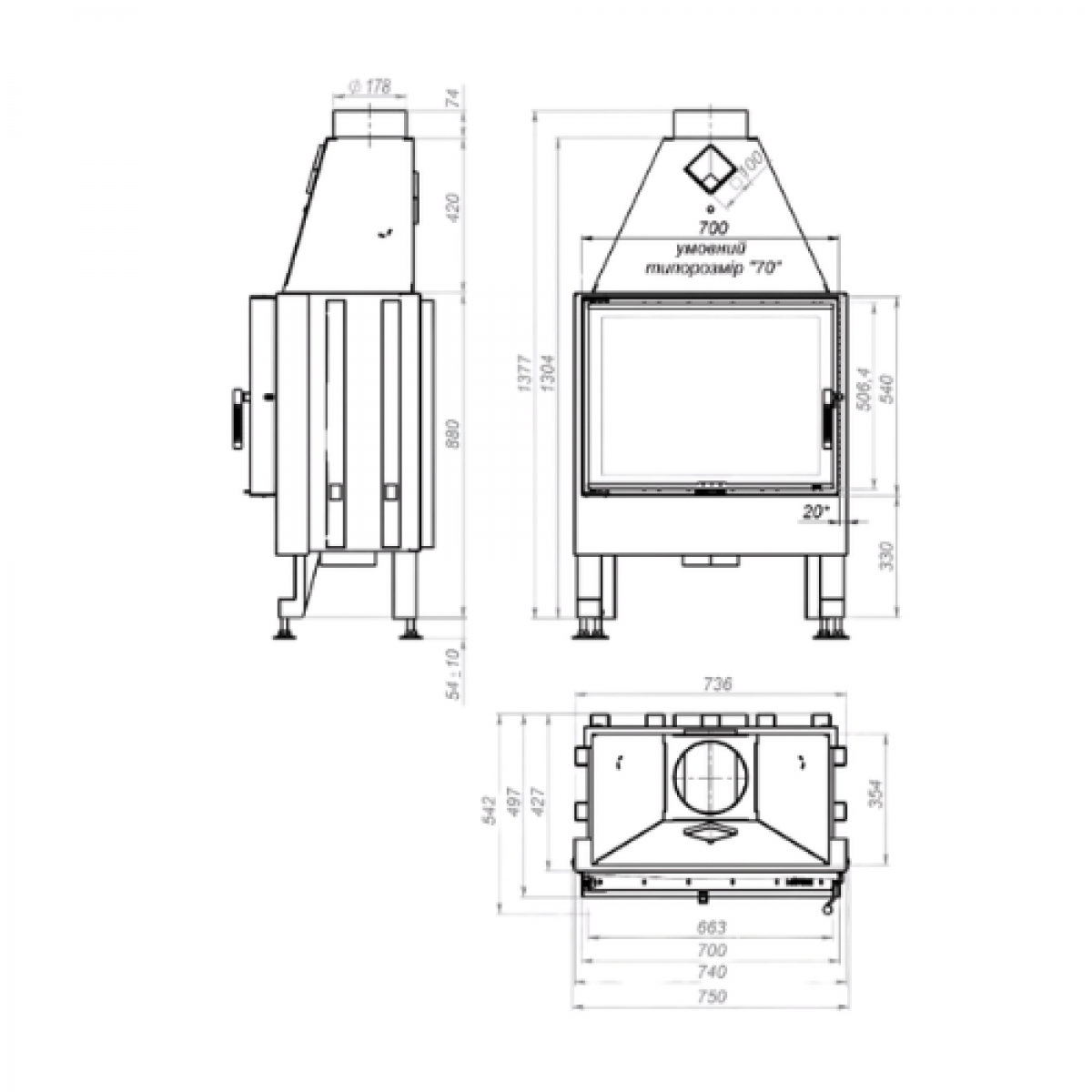 Камінна топка M-FIRE 70 пряма (15kW)