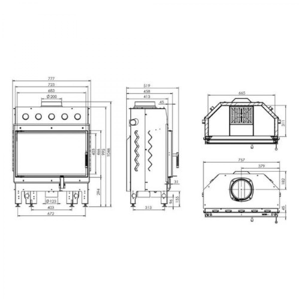 | Діаметр димоходу, мм: | 200 |