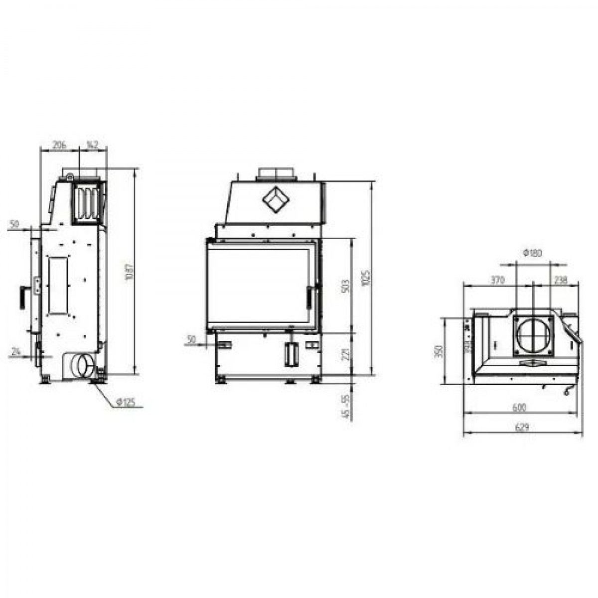 | Діаметр димоходу, мм: | 180 |