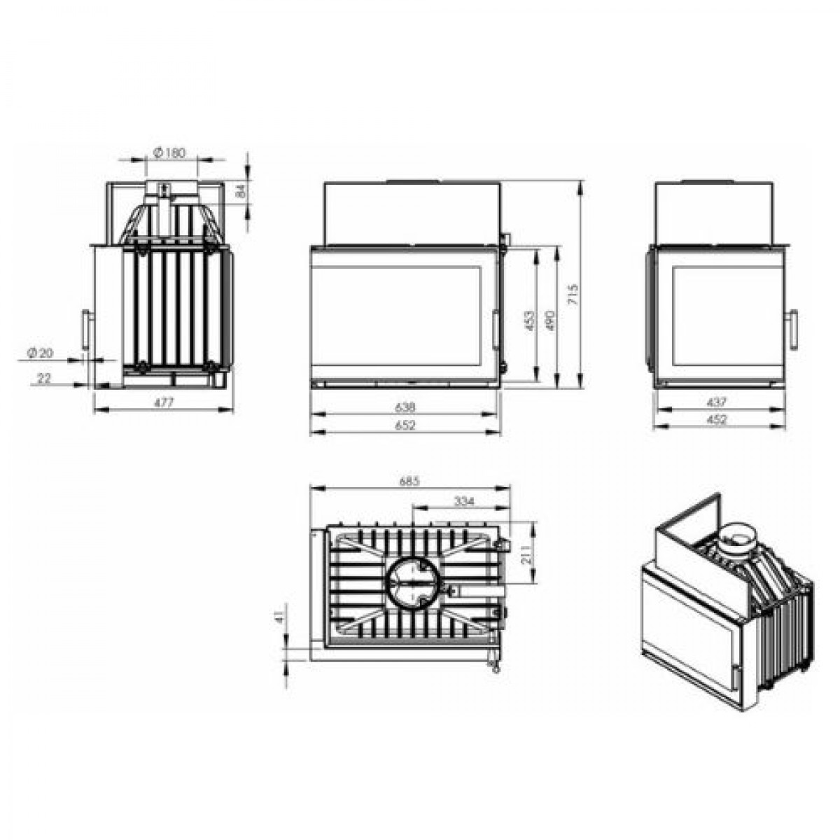 Діаметр димоходу, мм: 180