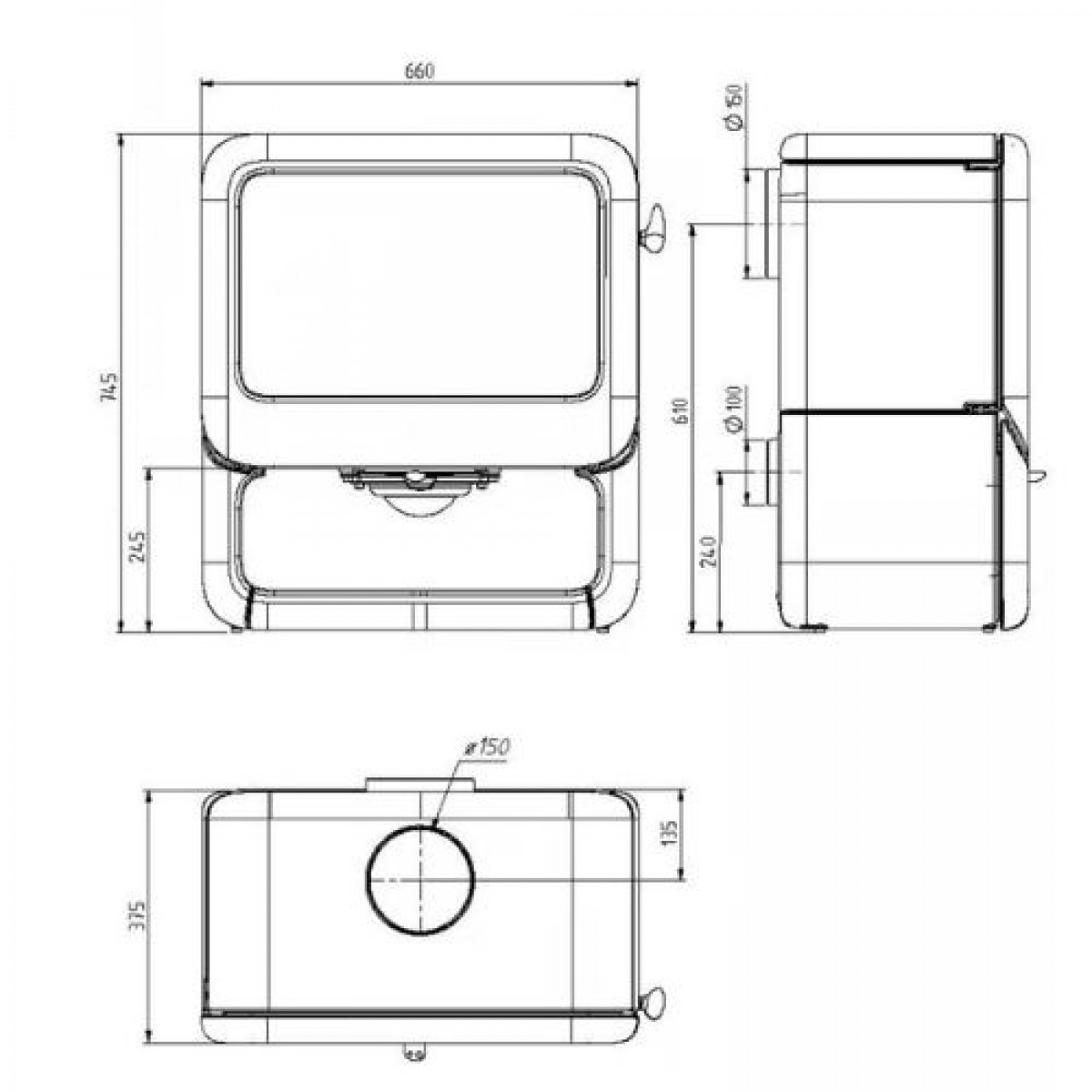 | Діаметр димоходу, мм: | 150 |