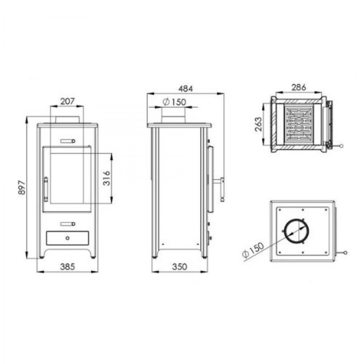 | Діаметр димоходу, мм: | 150 |