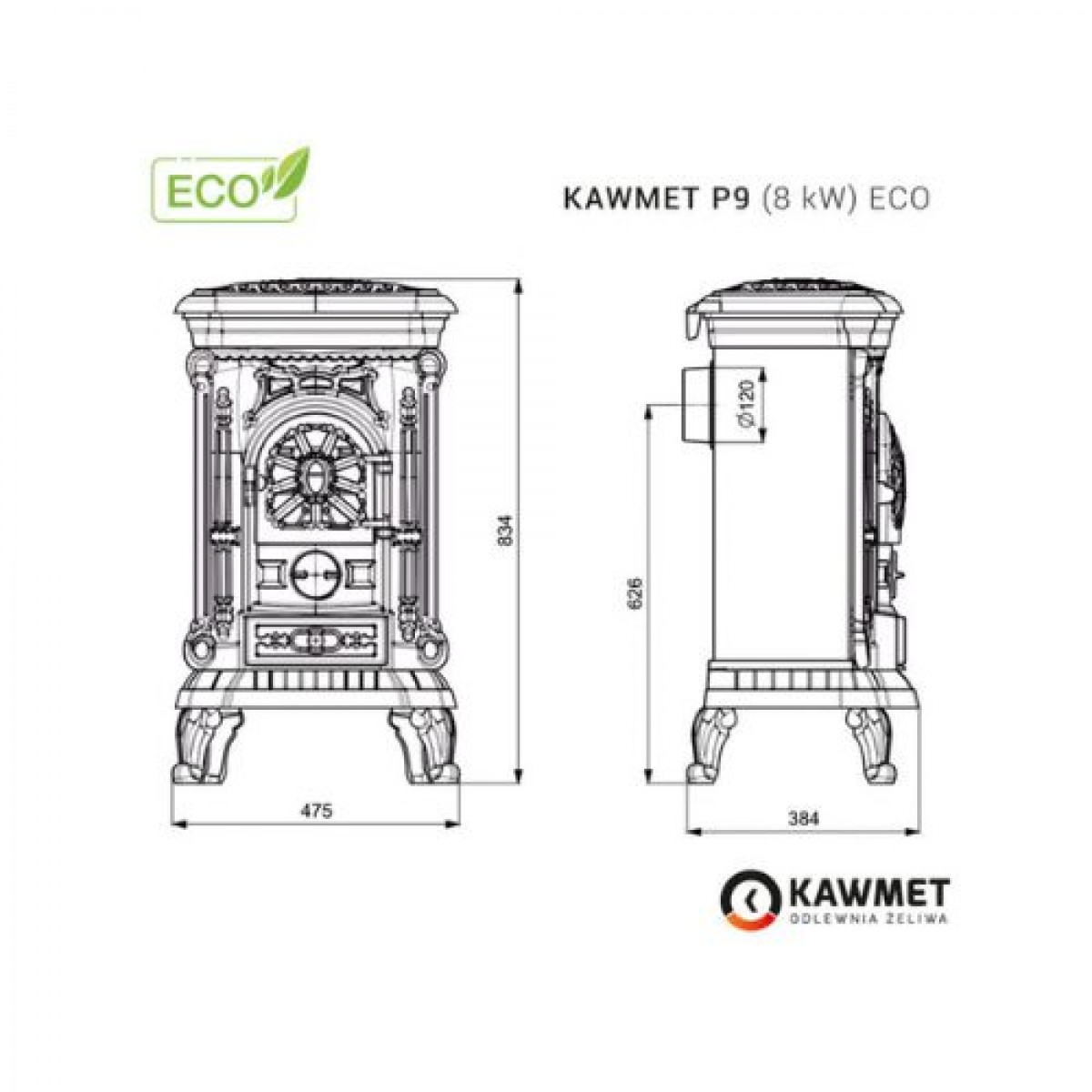 Екологічність : Піч-камін Kawmet P9 відповідає всім екологічним стандартам, забезпечуючи мінімальний вплив на довкілля.