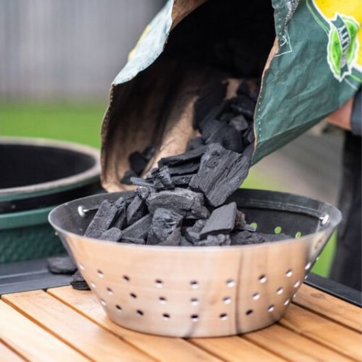 - Полегшує та прискорює процес роботи з грилем. Кошик для вугілля Big Green Egg XL сприяє збільшенню потоку повітря в обладнанні (гриль швидше нагрівається).
