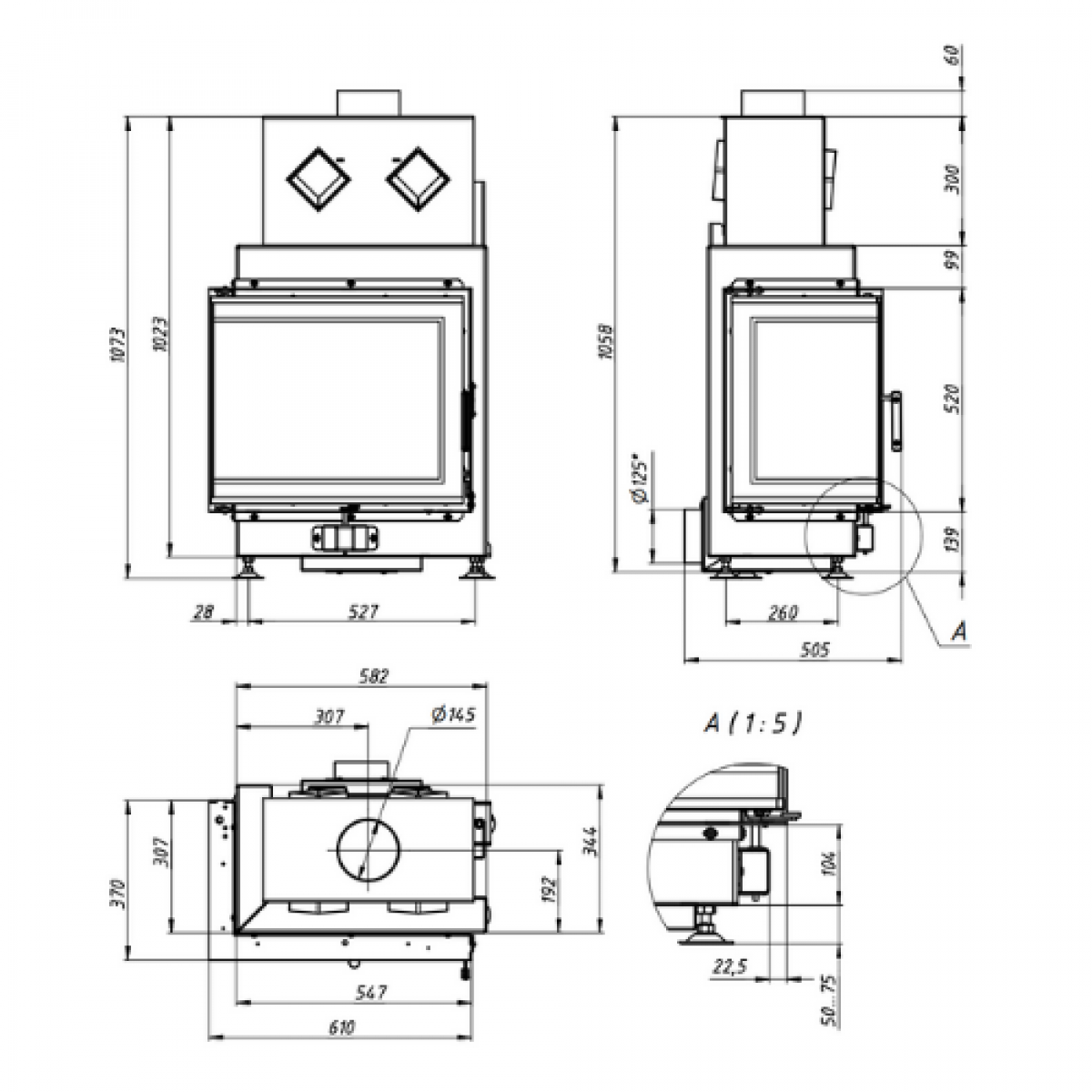 | Діаметр димоходу, мм: | 150 |