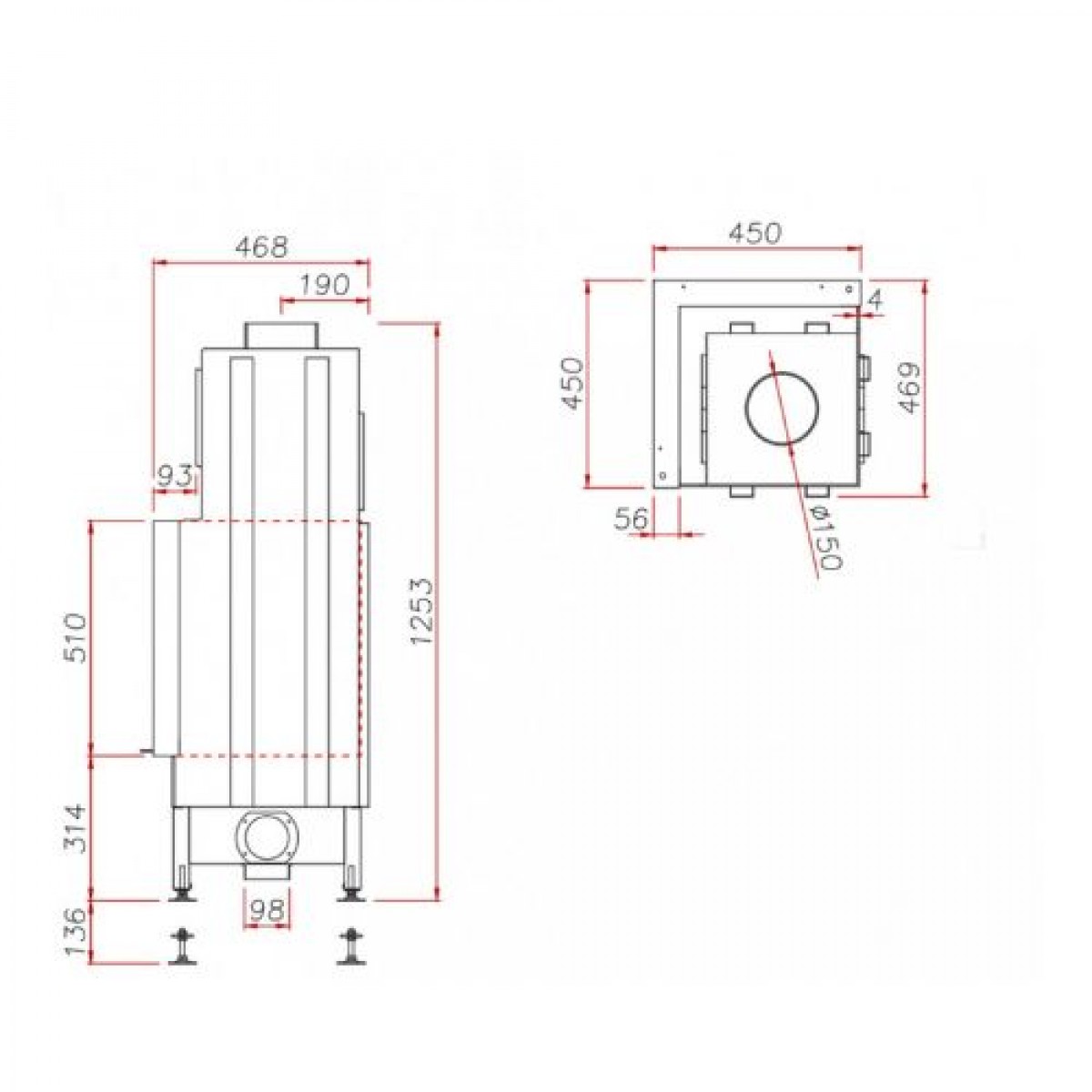 | Діаметр димоходу, мм: | 180 |