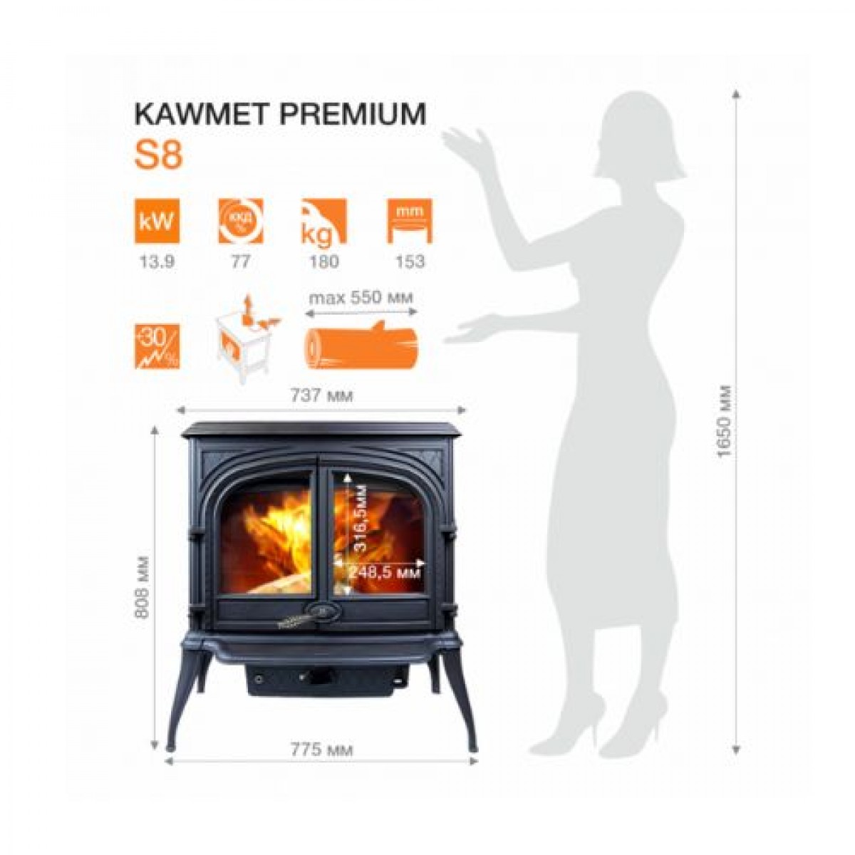 Піч-камін Kawmet Premium Helios - це втілення сучасних технологій та стильного дизайну в одному пристрої. Ця модель піч-каміну виражає вашу практичність та естетичність, надаючи вашому дому неповторний шарм та надійне джерело тепла.